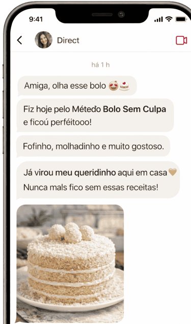 Adquira HOJE o "Método Bolos Sem Culpa" e você receberá imediatamente: